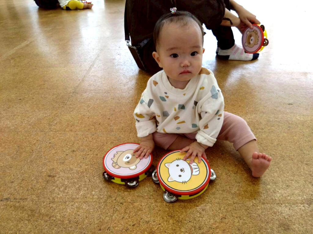 また、タンバリンやマラカスを使って、リズム遊びをしました。