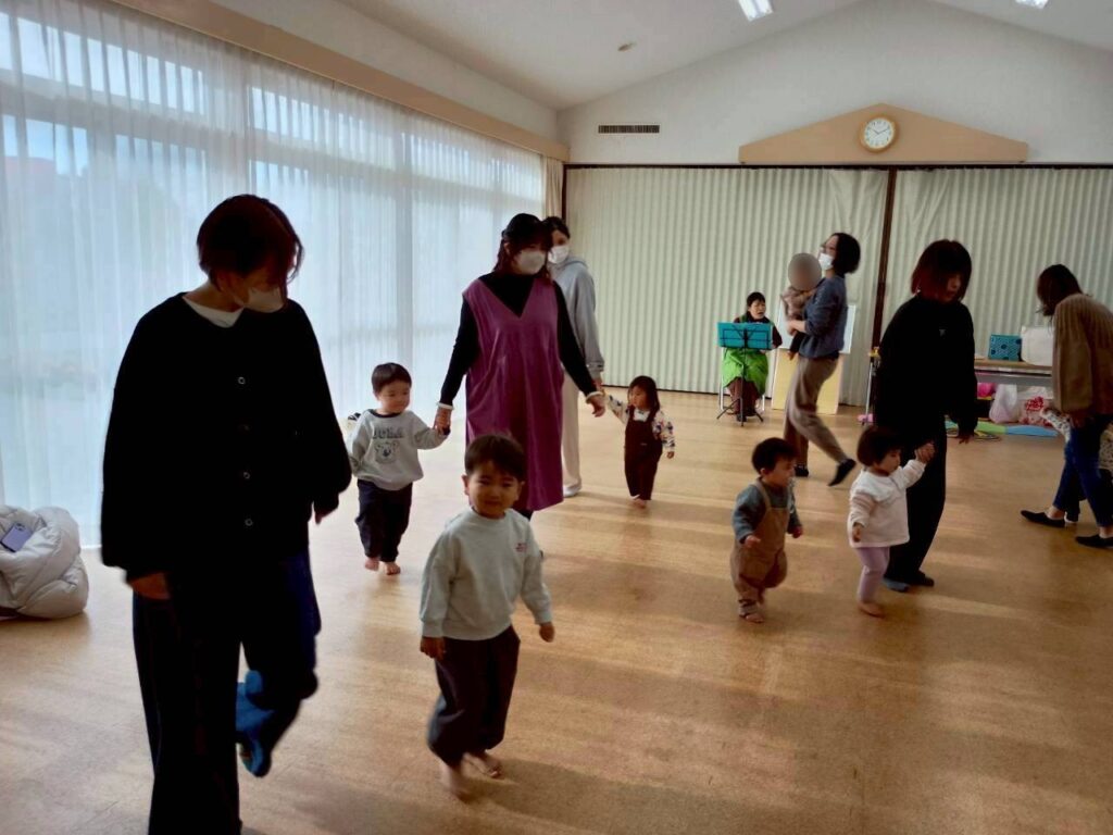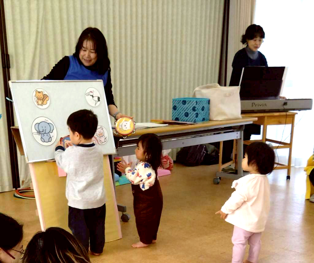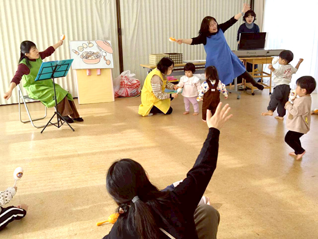 1月20日(火)、長坂子育て広場を開催しました。ぴっころクラブの皆さんによるリトミックで楽しみました。