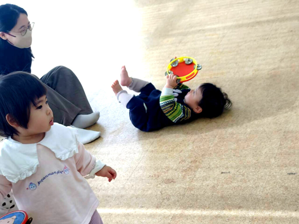 次に登場したのはタンバリン。いろんな曲に合わせて叩いたり振ったりして楽しみました。