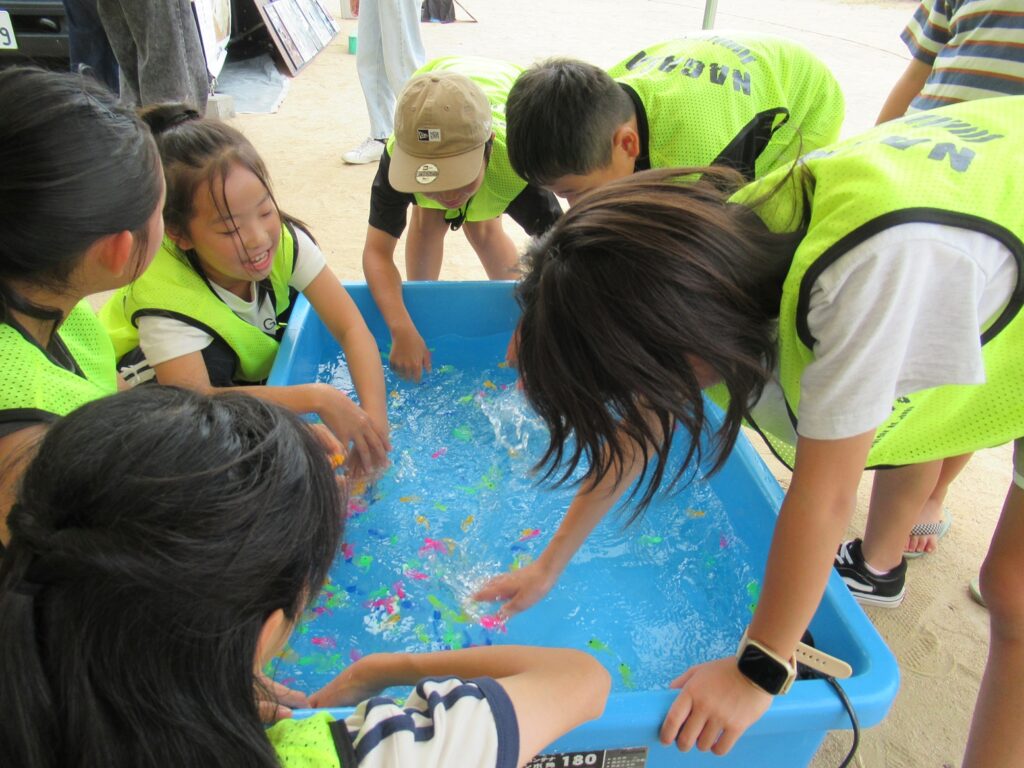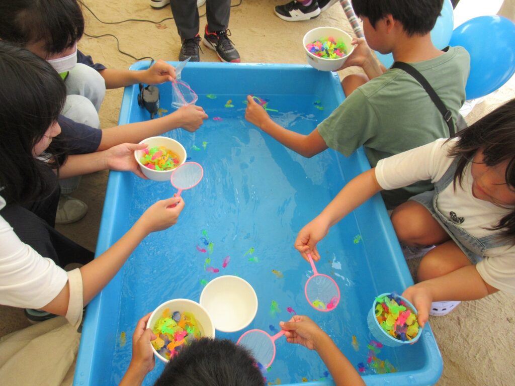 金魚掬いの宣伝をして、呼び込みをしてくれる子、金魚を入れるカップとポイをお客さんに渡す子、持ち帰り用の袋を渡す子、と役割分担しながら、頑張ってくれました。