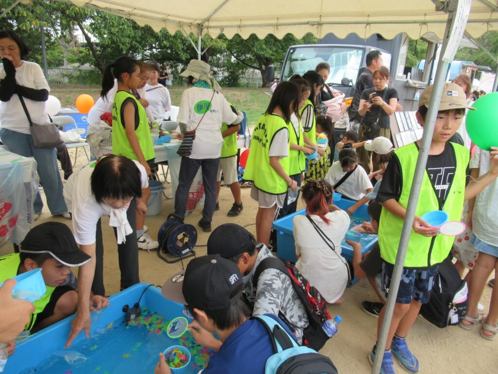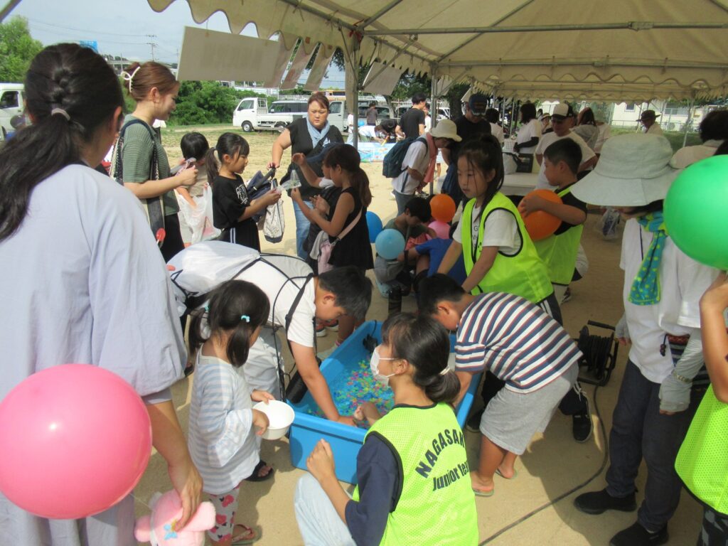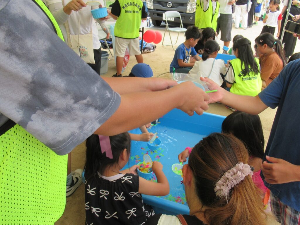 9月20日 長坂ジュニアチームは、伊川リバーフェスタで、民児協主催のプラ金魚掬いのお手伝いをしました。